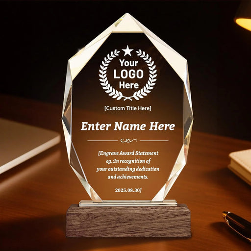 • Custom Logo Crystal Award – Personalized Corporate Recognition Trophy