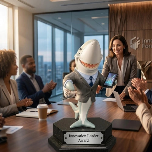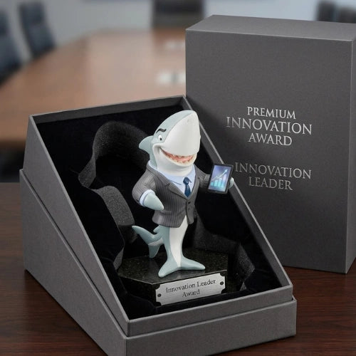 Celebrate the relentless hunger of your top performer with a trophy that matches their energy. Dressed in a sharp power suit and holding the stats to prove it, this shark symbolises total sales floor dominance. Itβs not just a reward; itβs a high-quality desk centre piece featuring a fun bobble action that reminds everyone who really owns the tank.Β