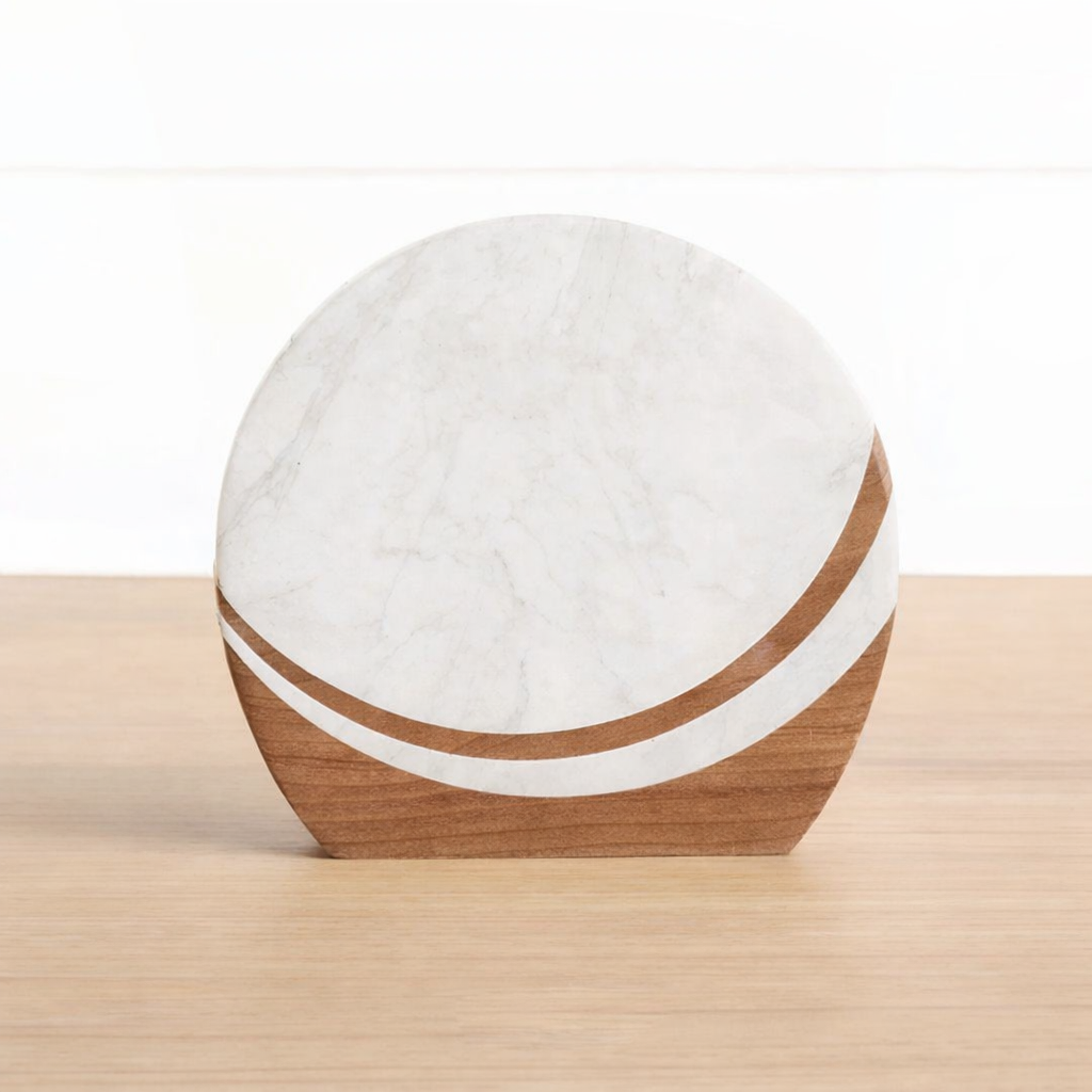 The Marblewood Circle Leadership Award is a refined expression of achievement, blending the strength of natural marble with the warmth of solid maple wood. Its circular marble face represents unity, balance, and continuity, while the sculpted wooden base adds prestige and executive presence.