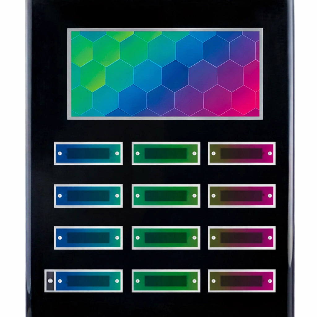 Command the room with this architectural perpetual plaquefeaturing a triple-sail crystal design. This centerpiece includes removable black granite-style blocks, making it the ultimate custom perpetual trophy for multi-winner recognition. It is a striking choice for organizations that value modern perpetual plaques with a nautical, leadership-focused aesthetic.
